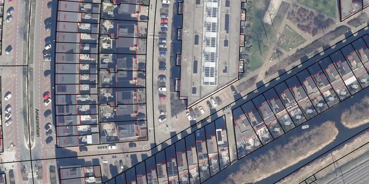 Het perceel waarop Siouxstraat 159 staat heeft een oppervlakte van 3945 m². Dit is een zeer groot perceel. De perceeloppervlakte wordt geregistreerd door het Kadaster. Gedetailleerde informatie over de maten van dit perceel kunt u vinden in het rapport Kadastrale kaart met maatvoering van Siouxstraat 159.