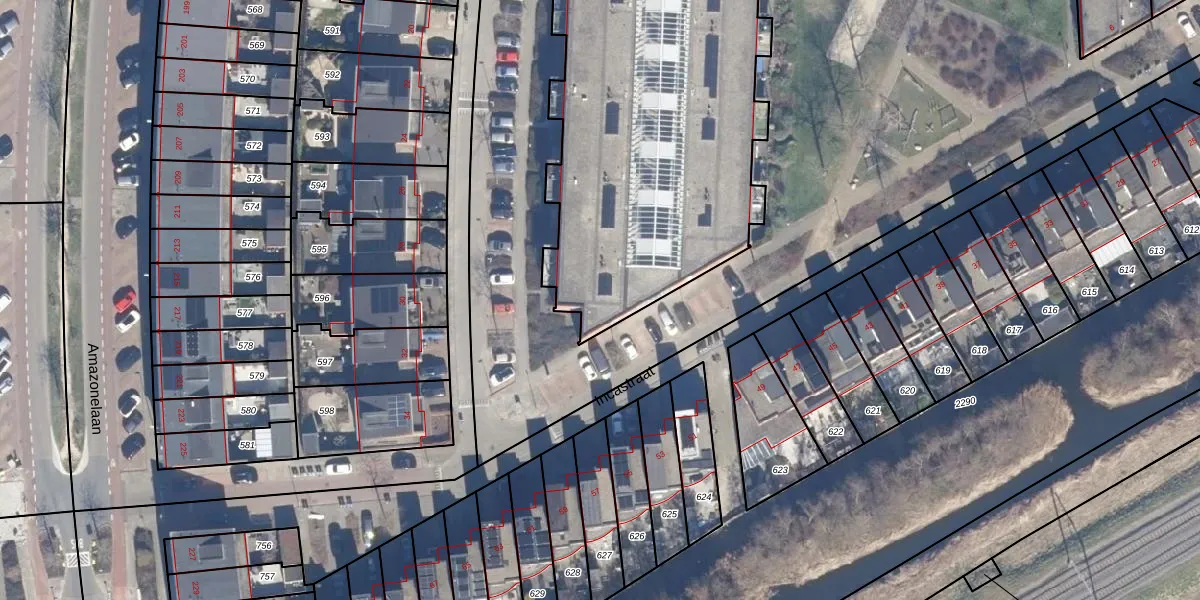 Het perceel waarop Siouxstraat 169 staat heeft een oppervlakte van 3945 m². Dit is een zeer groot perceel. De perceeloppervlakte wordt geregistreerd door het Kadaster. Gedetailleerde informatie over de maten van dit perceel kunt u vinden in het rapport Kadastrale kaart met maatvoering van Siouxstraat 169.