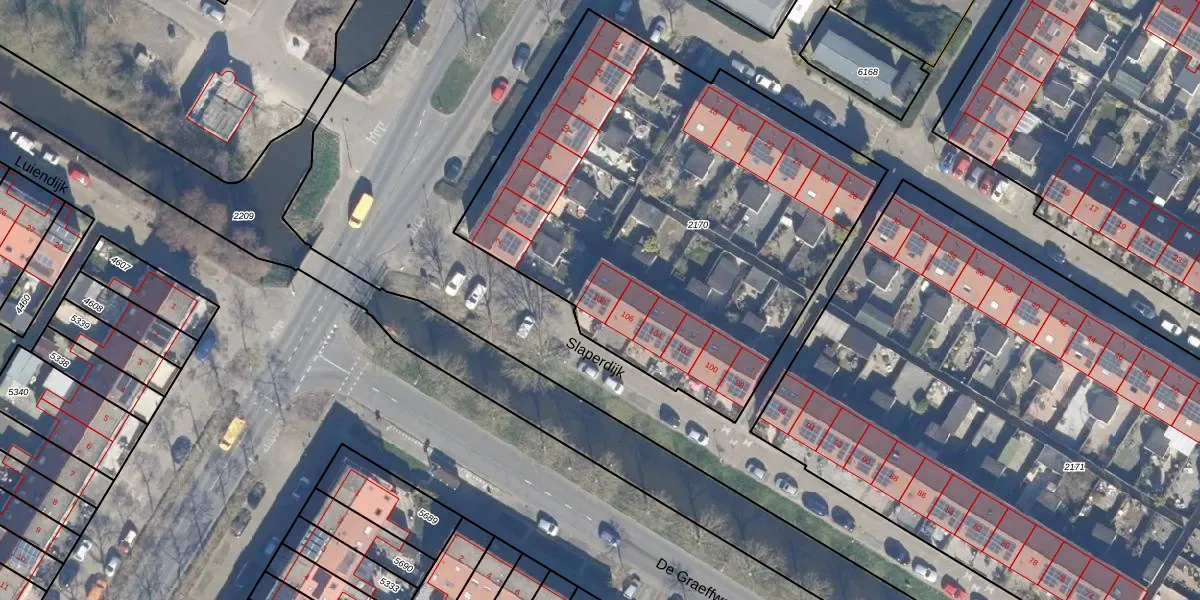 Slaperdijk 108 is gelegen op kadastraal perceel PMR00A2170. Deze kadastrale aanduiding is uniek en wordt gebruikt door het Kadaster om eigendomsrechten en andere zakelijke rechten vast te leggen. Het perceel maakt onderdeel uit van de kadastrale gemeente Purmerend.