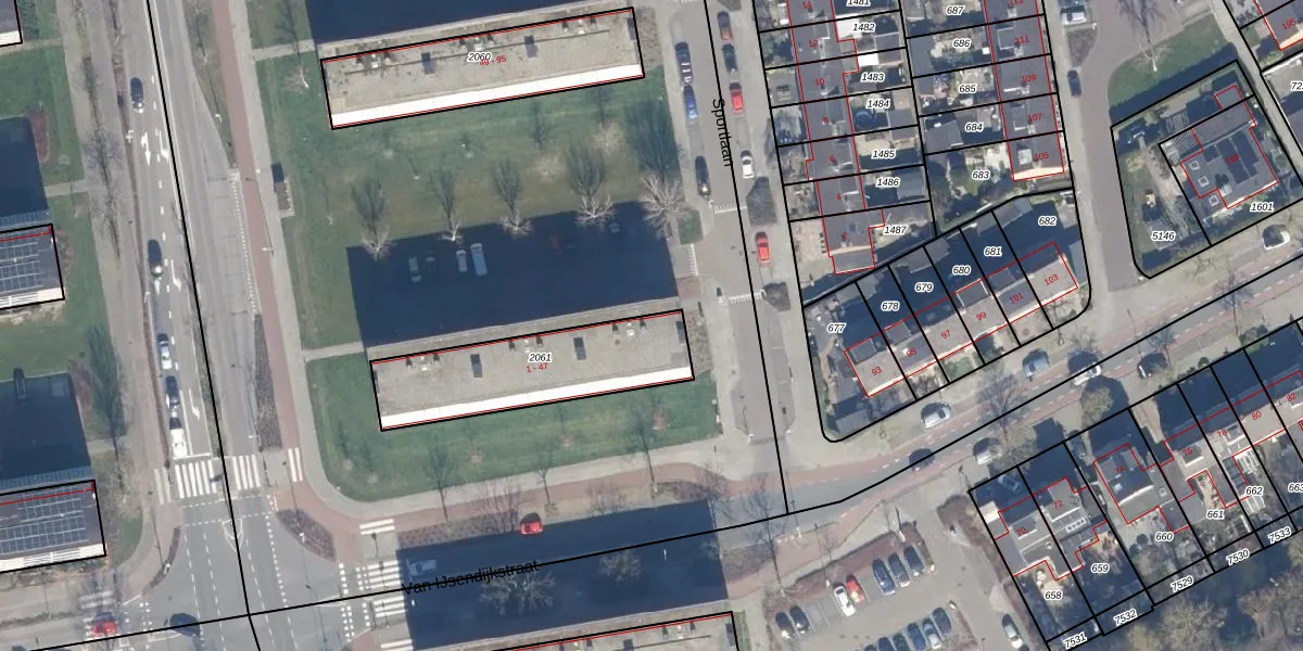 Sportlaan 5 is gelegen op kadastraal perceel PMR00D2061. Deze kadastrale aanduiding is uniek en wordt gebruikt door het Kadaster om eigendomsrechten en andere zakelijke rechten vast te leggen. Het perceel maakt onderdeel uit van de kadastrale gemeente Purmerend.