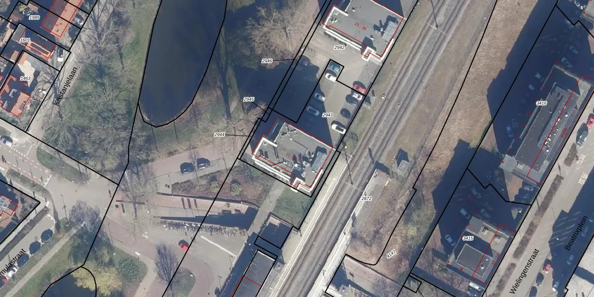 Het perceel waarop Stationsweg 14 staat heeft een oppervlakte van 875 m². Dit is een groot perceel. De perceeloppervlakte wordt geregistreerd door het Kadaster. Gedetailleerde informatie over de maten van dit perceel kunt u vinden in het rapport Kadastrale kaart met maatvoering van Stationsweg 14.