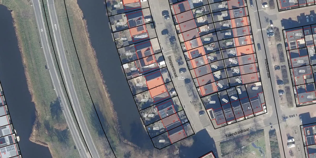 Gebruik de zoekbalk of klik op een perceel voor informatie over de adressen binnen dit perceel.