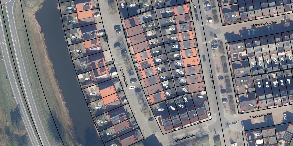 Gebruik de zoekbalk of klik op een perceel voor informatie over de adressen binnen dit perceel.