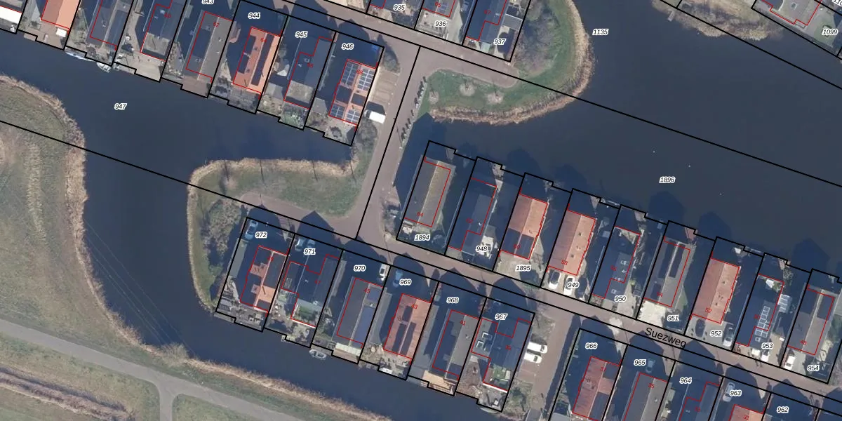 Het perceel waarop Suezweg 64 staat heeft een oppervlakte van 290 m². Dit is een middelgroot perceel. De perceeloppervlakte wordt geregistreerd door het Kadaster. Gedetailleerde informatie over de maten van dit perceel kunt u vinden in het rapport Kadastrale kaart met maatvoering van Suezweg 64.