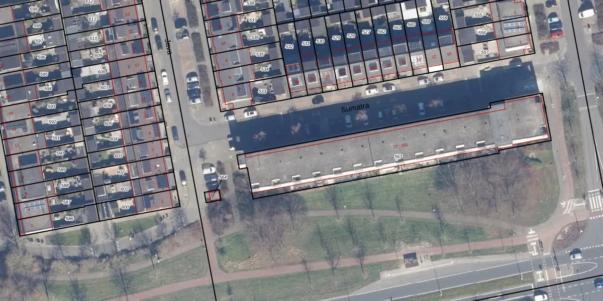 Het perceel waarop Sumatra 139 staat heeft een oppervlakte van 1565 m². Dit is een zeer groot perceel. De perceeloppervlakte wordt geregistreerd door het Kadaster. Gedetailleerde informatie over de maten van dit perceel kunt u vinden in het rapport Kadastrale kaart met maatvoering van Sumatra 139.