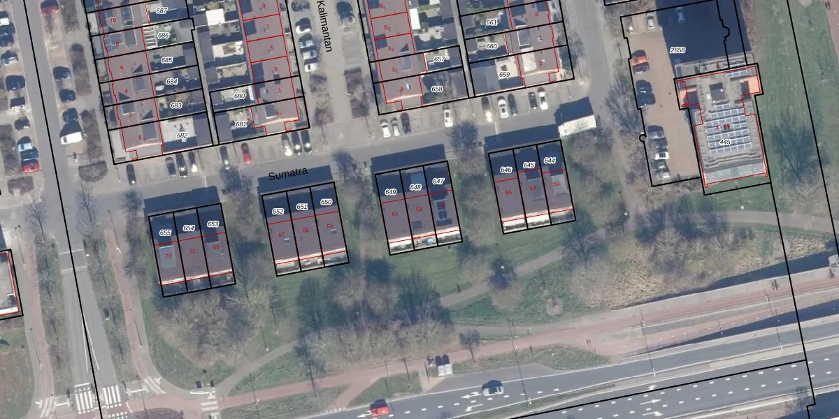 Het perceel waarop Sumatra 59 staat heeft een oppervlakte van 111 m². Dit is een middelgroot perceel. De perceeloppervlakte wordt geregistreerd door het Kadaster. Gedetailleerde informatie over de maten van dit perceel kunt u vinden in het rapport Kadastrale kaart met maatvoering van Sumatra 59.