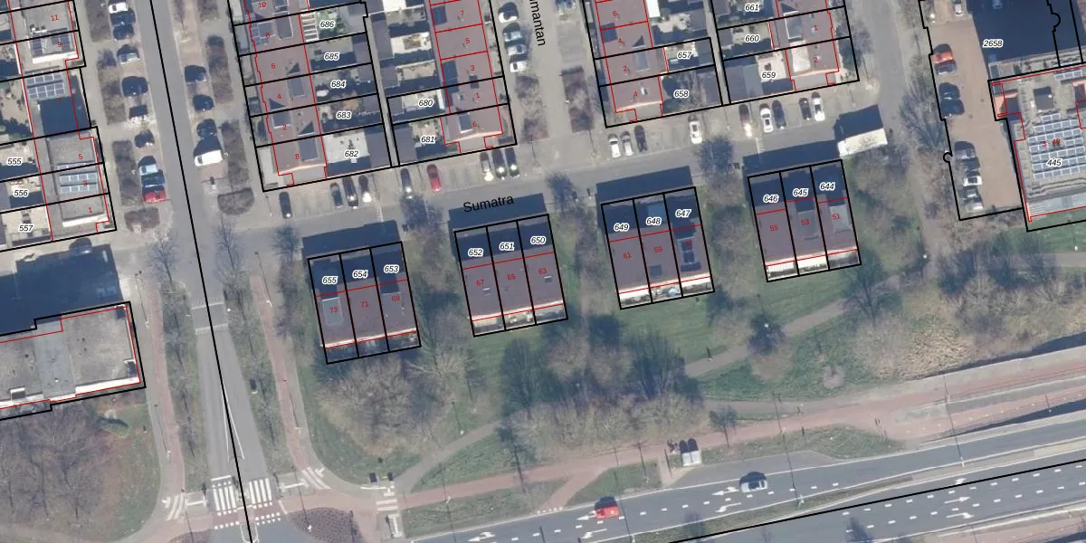 Gebruik de zoekbalk of klik op een perceel voor informatie over de adressen binnen dit perceel.