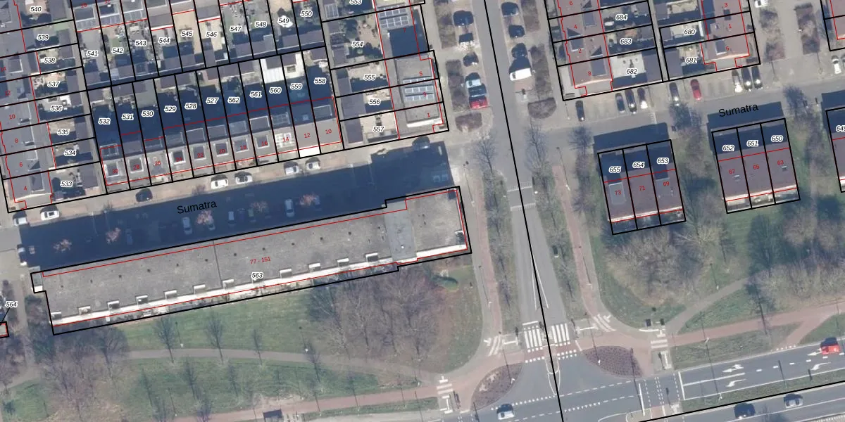 Het perceel waarop Sumatra 81 staat heeft een oppervlakte van 1565 m². Dit is een zeer groot perceel. De perceeloppervlakte wordt geregistreerd door het Kadaster. Gedetailleerde informatie over de maten van dit perceel kunt u vinden in het rapport Kadastrale kaart met maatvoering van Sumatra 81.