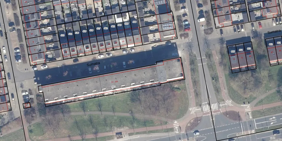 Het perceel waarop Sumatra 97 staat heeft een oppervlakte van 1565 m². Dit is een zeer groot perceel. De perceeloppervlakte wordt geregistreerd door het Kadaster. Gedetailleerde informatie over de maten van dit perceel kunt u vinden in het rapport Kadastrale kaart met maatvoering van Sumatra 97.