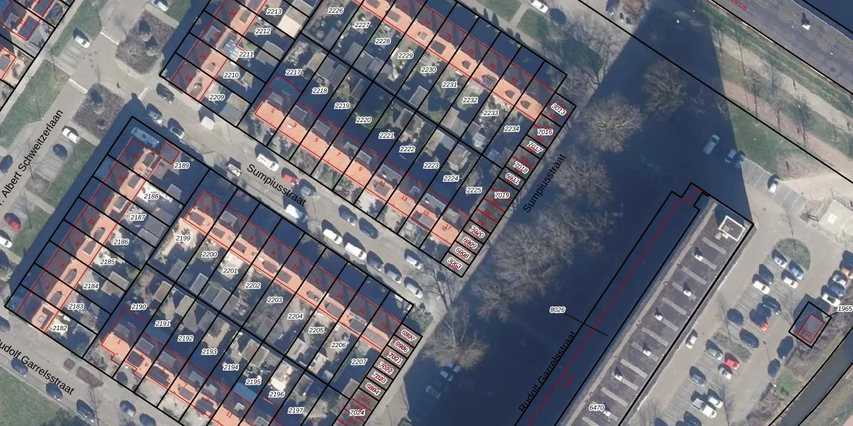 Het perceel waarop Sumpiusstraat 15 staat heeft een oppervlakte van 164 m². Dit is een middelgroot perceel. De perceeloppervlakte wordt geregistreerd door het Kadaster. Gedetailleerde informatie over de maten van dit perceel kunt u vinden in het rapport Kadastrale kaart met maatvoering van Sumpiusstraat 15.