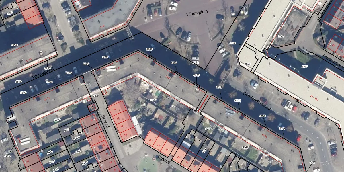 Het perceel waarop Tilburyplein 12 staat heeft een oppervlakte van 2346 m². Dit is een zeer groot perceel. De perceeloppervlakte wordt geregistreerd door het Kadaster. Gedetailleerde informatie over de maten van dit perceel kunt u vinden in het rapport Kadastrale kaart met maatvoering van Tilburyplein 12.