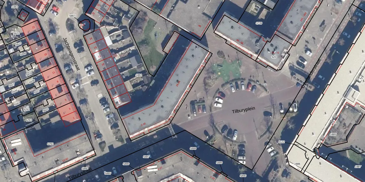 Het perceel waarop Tilburyplein 33 staat heeft een oppervlakte van 2724 m². Dit is een zeer groot perceel. De perceeloppervlakte wordt geregistreerd door het Kadaster. Gedetailleerde informatie over de maten van dit perceel kunt u vinden in het rapport Kadastrale kaart met maatvoering van Tilburyplein 33.