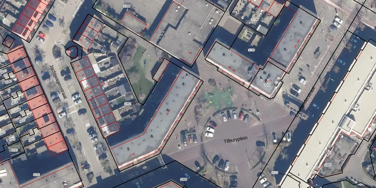 Het perceel waarop Tilburyplein 39 staat heeft een oppervlakte van 2724 m². Dit is een zeer groot perceel. De perceeloppervlakte wordt geregistreerd door het Kadaster. Gedetailleerde informatie over de maten van dit perceel kunt u vinden in het rapport Kadastrale kaart met maatvoering van Tilburyplein 39.