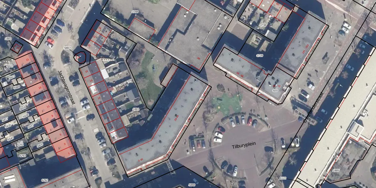 Het perceel waarop Tilburyplein 43 staat heeft een oppervlakte van 2724 m². Dit is een zeer groot perceel. De perceeloppervlakte wordt geregistreerd door het Kadaster. Gedetailleerde informatie over de maten van dit perceel kunt u vinden in het rapport Kadastrale kaart met maatvoering van Tilburyplein 43.