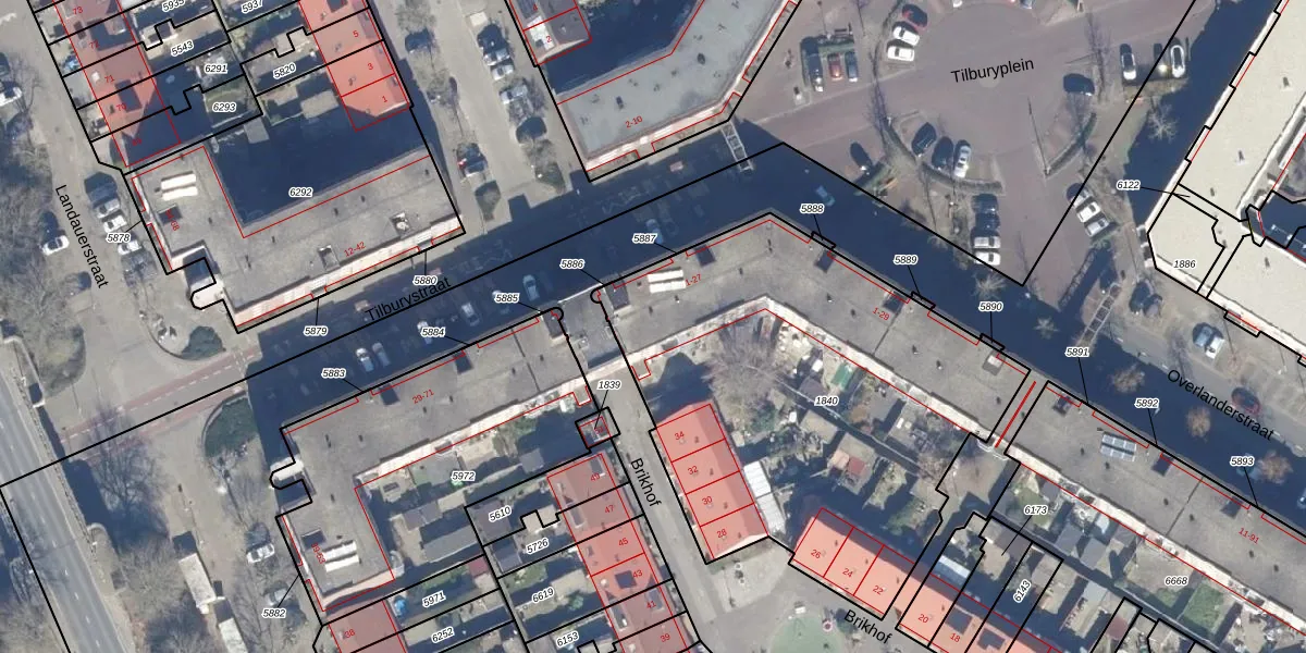 Het perceel waarop Tilburystraat 25 staat heeft een oppervlakte van 2346 m². Dit is een zeer groot perceel. De perceeloppervlakte wordt geregistreerd door het Kadaster. Gedetailleerde informatie over de maten van dit perceel kunt u vinden in het rapport Kadastrale kaart met maatvoering van Tilburystraat 25.