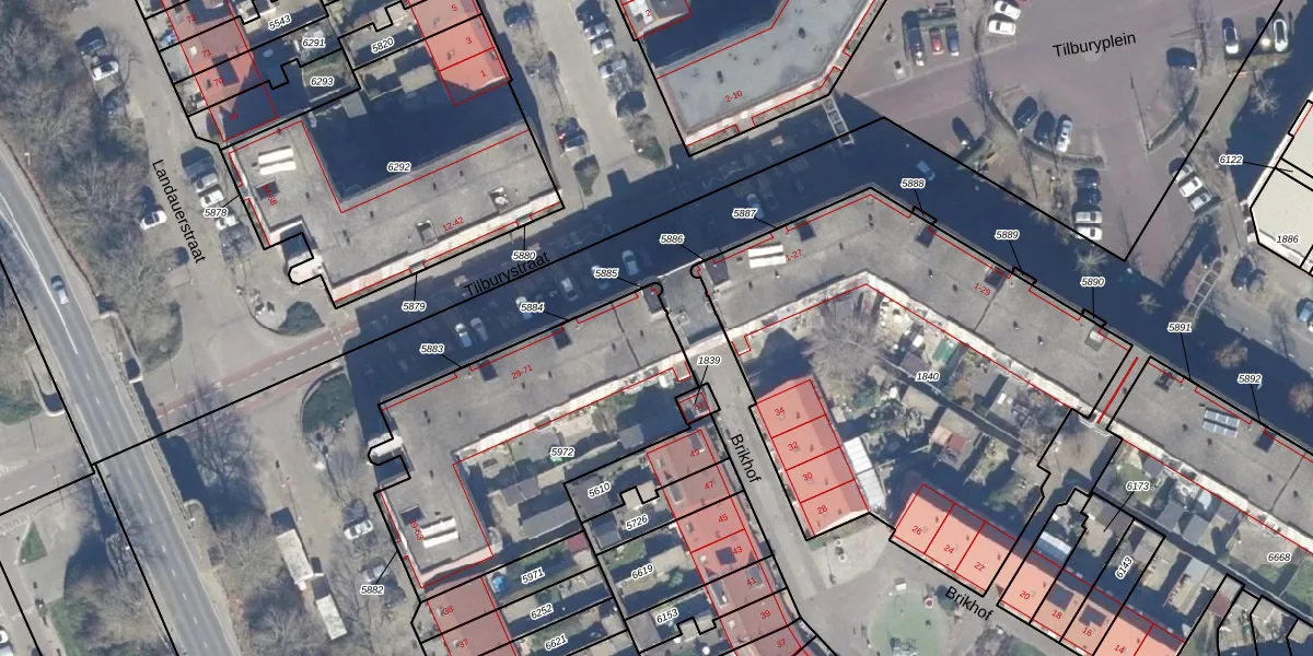 Het perceel waarop Tilburystraat 33 staat heeft een oppervlakte van 1294 m². Dit is een zeer groot perceel. De perceeloppervlakte wordt geregistreerd door het Kadaster. Gedetailleerde informatie over de maten van dit perceel kunt u vinden in het rapport Kadastrale kaart met maatvoering van Tilburystraat 33.