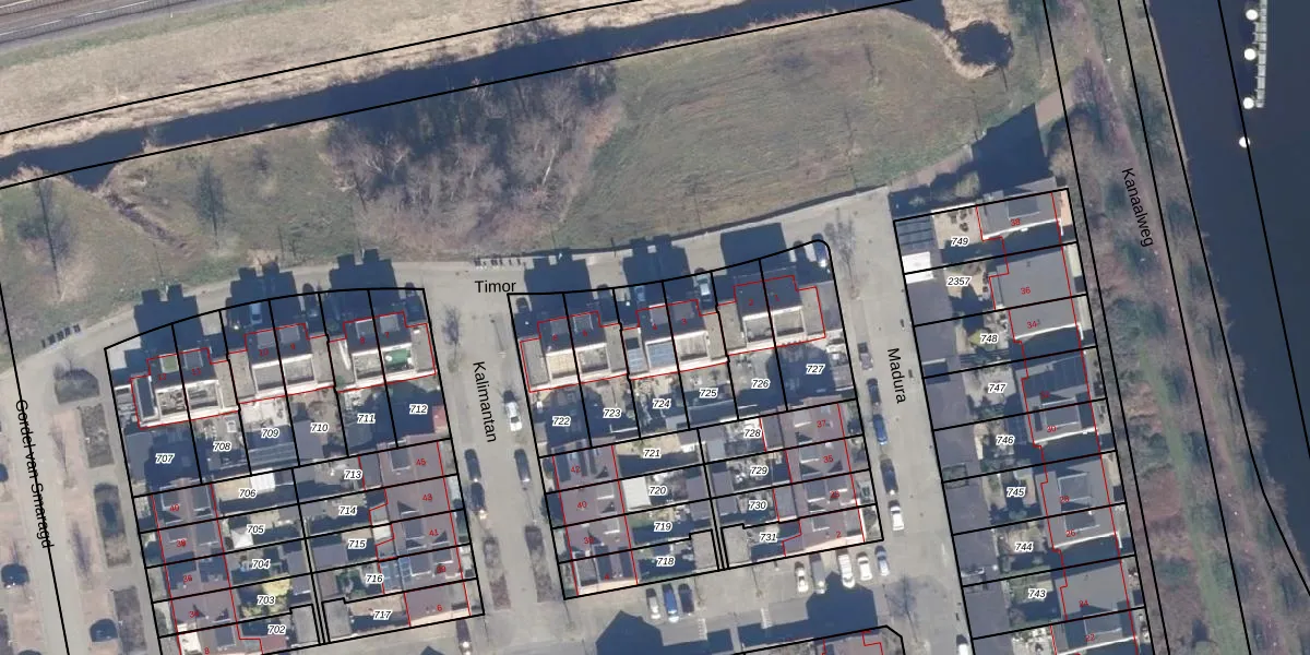 Gebruik de zoekbalk of klik op een perceel voor informatie over de adressen binnen dit perceel.
