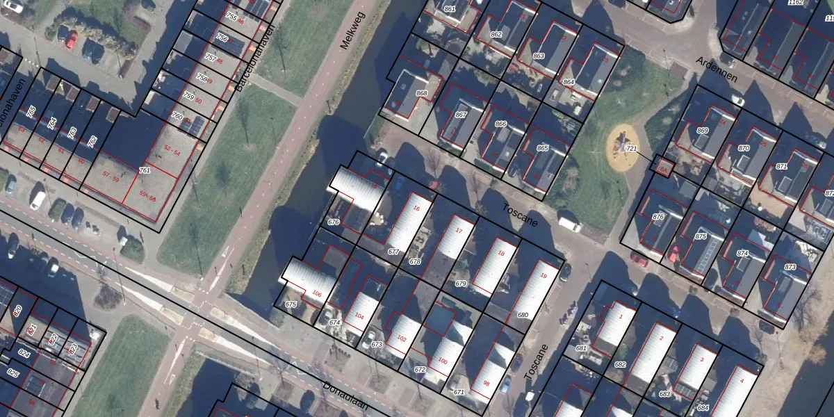 Het perceel waarop Toscane 16 staat heeft een oppervlakte van 232 m². Dit is een middelgroot perceel. De perceeloppervlakte wordt geregistreerd door het Kadaster. Gedetailleerde informatie over de maten van dit perceel kunt u vinden in het rapport Kadastrale kaart met maatvoering van Toscane 16.