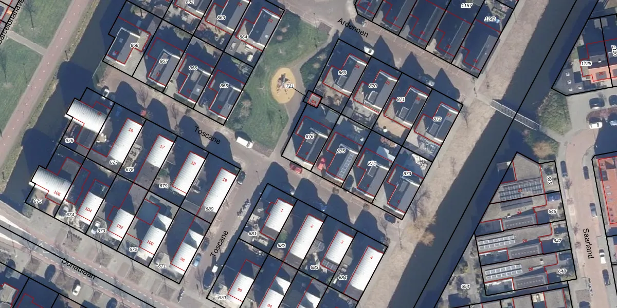 Gebruik de zoekbalk of klik op een perceel voor informatie over de adressen binnen dit perceel.