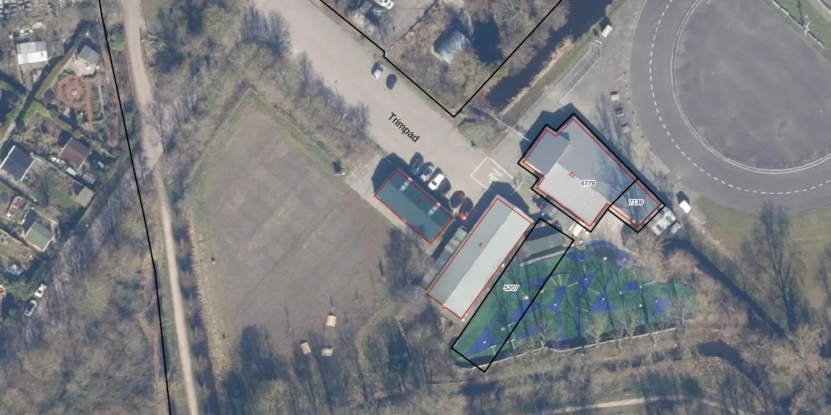 Het perceel waarop Trimpad 6 staat heeft een oppervlakte van 12,1 ha. Dit is een zeer groot perceel. De perceeloppervlakte wordt geregistreerd door het Kadaster. Gedetailleerde informatie over de maten van dit perceel kunt u vinden in het rapport Kadastrale kaart met maatvoering van Trimpad 6.