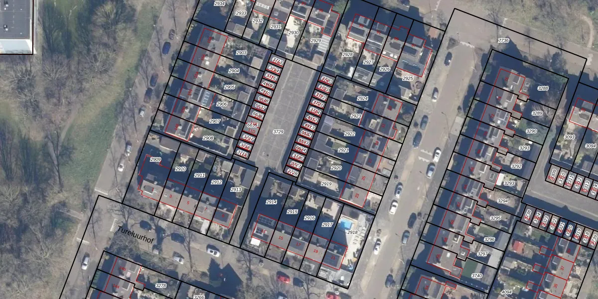 Het perceel waarop Tureluurhof 11-W staat heeft een oppervlakte van 15 m². Dit is een klein perceel. De perceeloppervlakte wordt geregistreerd door het Kadaster. Gedetailleerde informatie over de maten van dit perceel kunt u vinden in het rapport Kadastrale kaart met maatvoering van Tureluurhof 11-W.