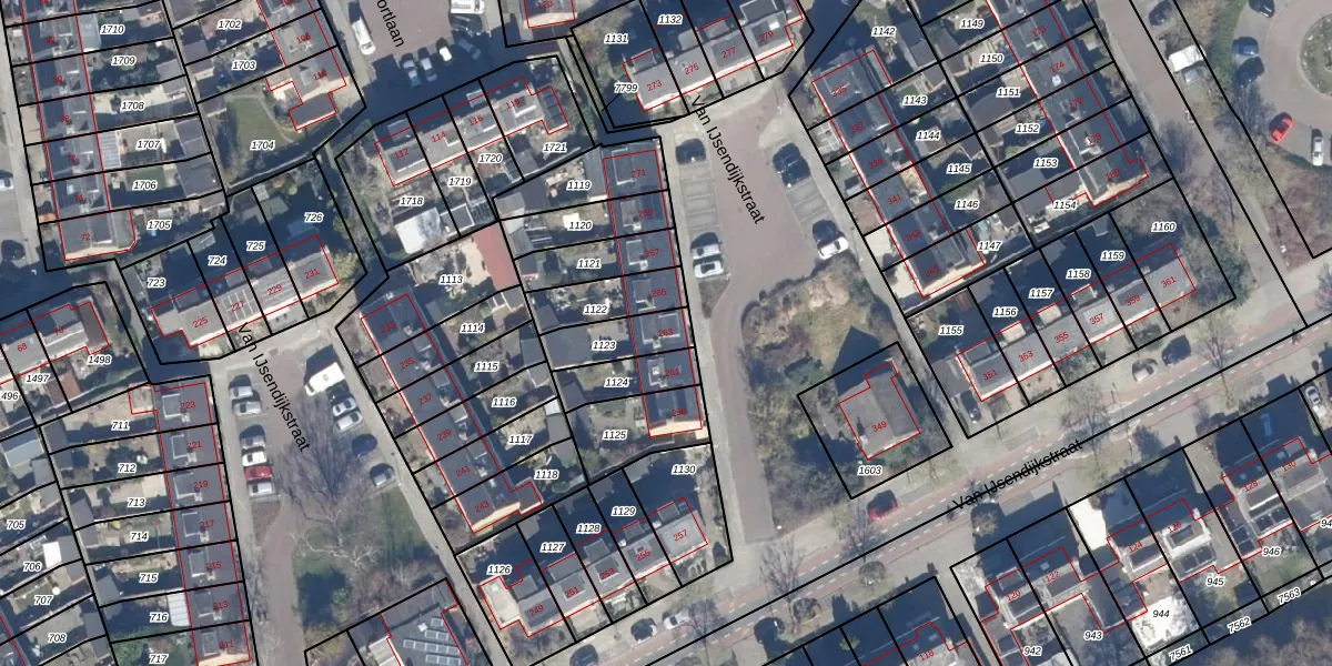Gebruik de zoekbalk of klik op een perceel voor informatie over de adressen binnen dit perceel.