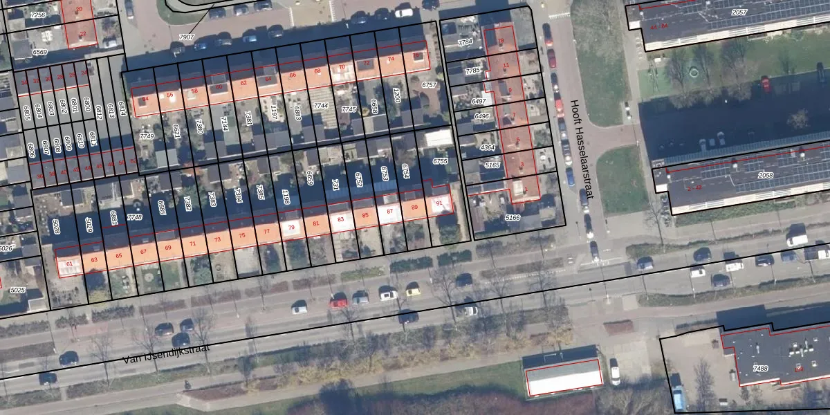Het perceel waarop Van IJsendijkstraat 89 staat heeft een oppervlakte van 169 m². Dit is een middelgroot perceel. De perceeloppervlakte wordt geregistreerd door het Kadaster. Gedetailleerde informatie over de maten van dit perceel kunt u vinden in het rapport Kadastrale kaart met maatvoering van Van IJsendijkstraat 89.