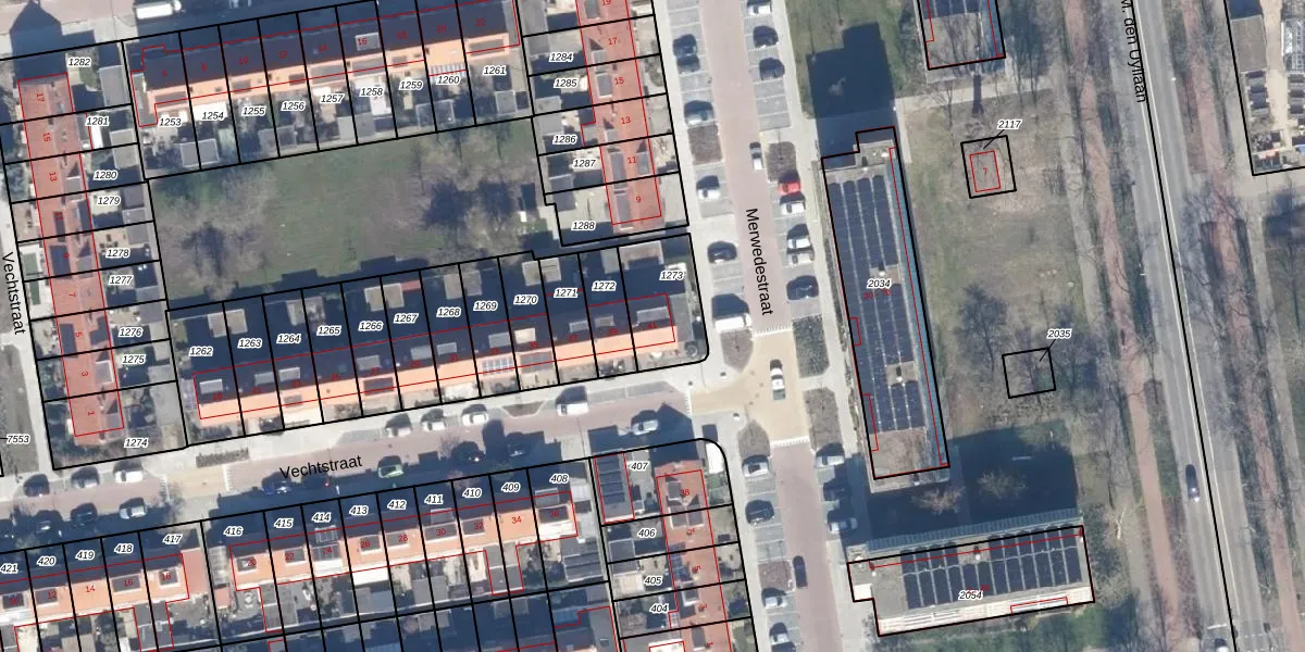 Gebruik de zoekbalk of klik op een perceel voor informatie over de adressen binnen dit perceel.