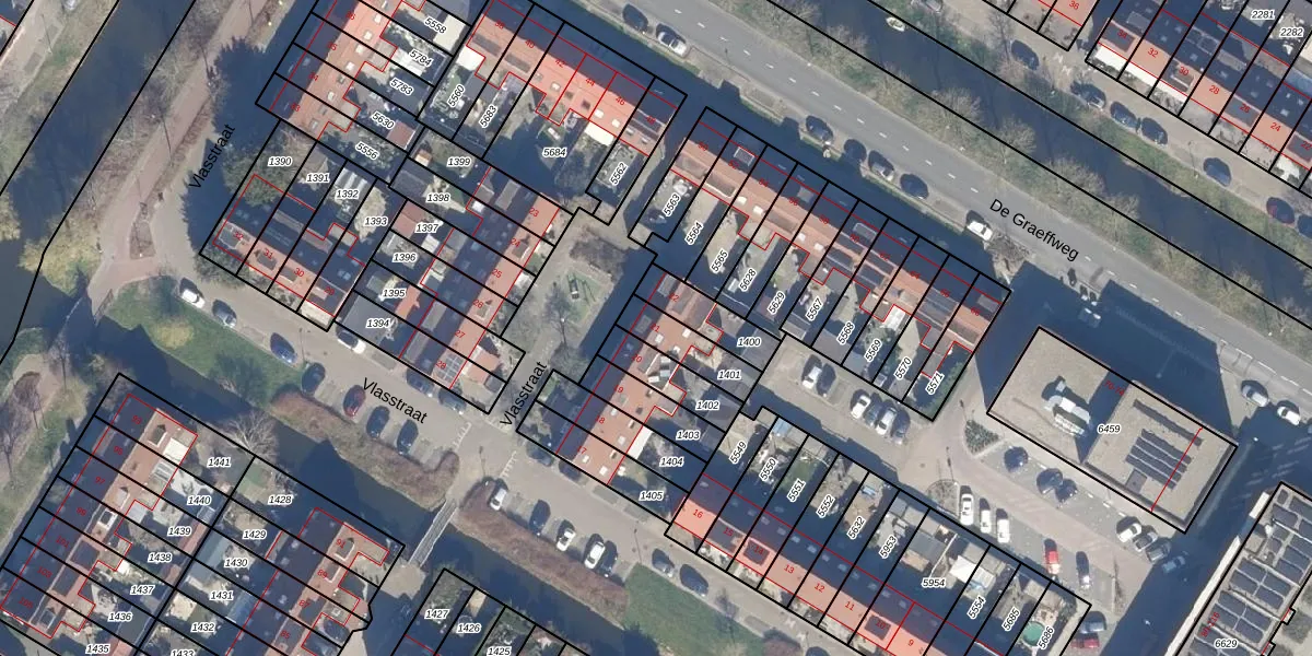 Het perceel waarop Vlasstraat 21 staat heeft een oppervlakte van 125 m². Dit is een middelgroot perceel. De perceeloppervlakte wordt geregistreerd door het Kadaster. Gedetailleerde informatie over de maten van dit perceel kunt u vinden in het rapport Kadastrale kaart met maatvoering van Vlasstraat 21.