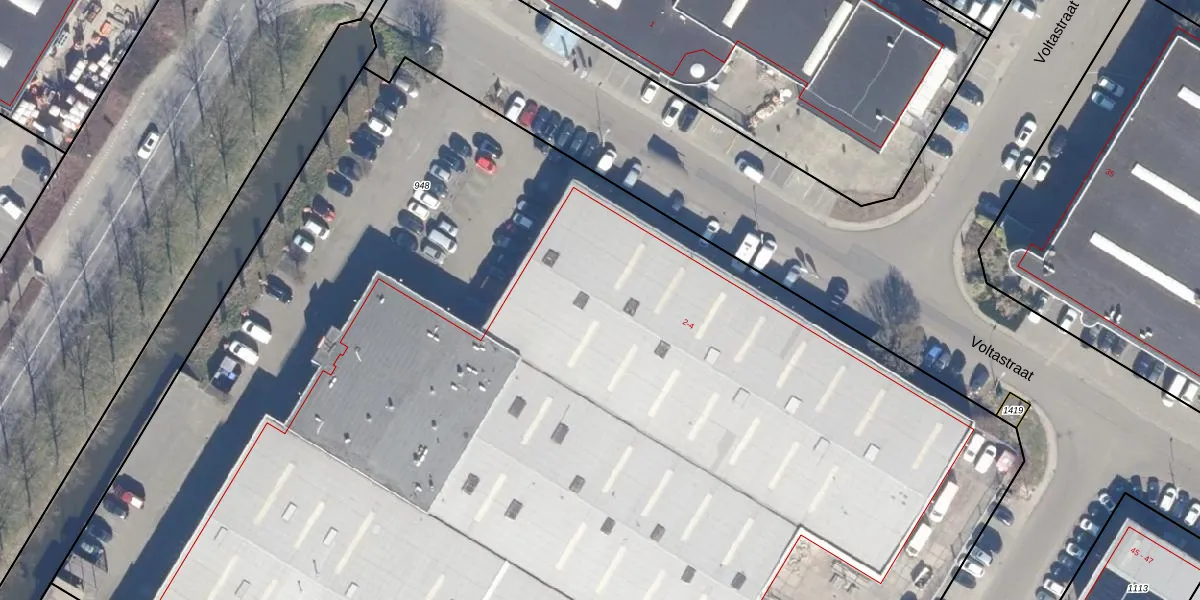 Het perceel waarop Voltastraat 2 staat heeft een oppervlakte van 1,3 ha. Dit is een zeer groot perceel. De perceeloppervlakte wordt geregistreerd door het Kadaster. Gedetailleerde informatie over de maten van dit perceel kunt u vinden in het rapport Kadastrale kaart met maatvoering van Voltastraat 2.