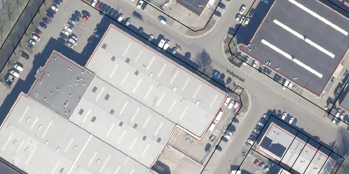 Het perceel waarop Voltastraat 2-A staat heeft een oppervlakte van 1,3 ha. Dit is een zeer groot perceel. De perceeloppervlakte wordt geregistreerd door het Kadaster. Gedetailleerde informatie over de maten van dit perceel kunt u vinden in het rapport Kadastrale kaart met maatvoering van Voltastraat 2-A.