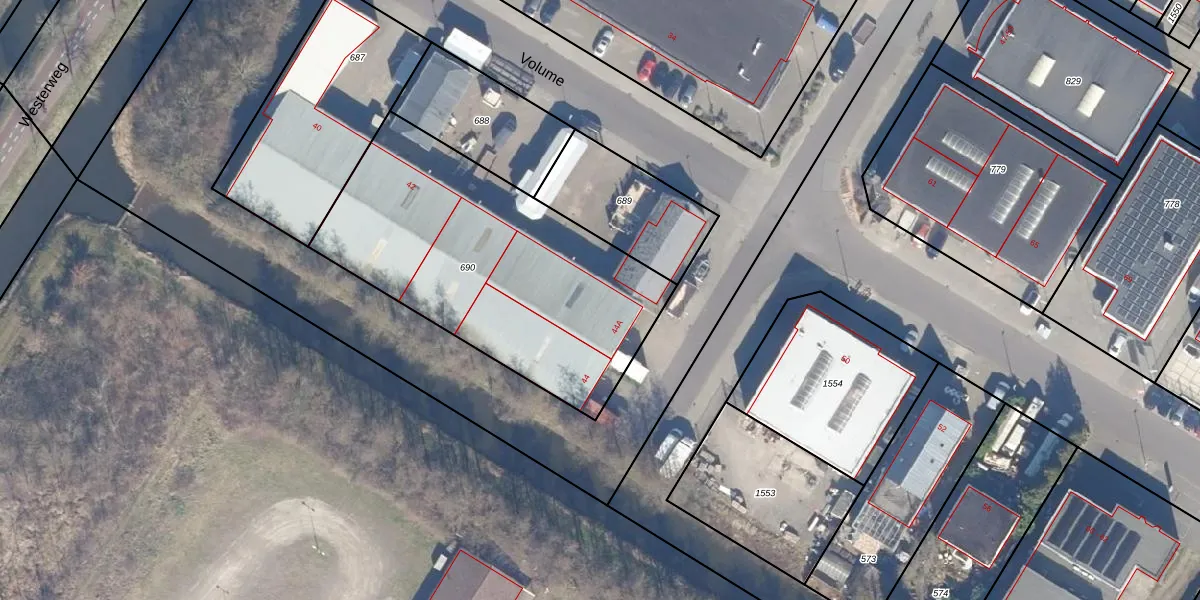 Het perceel waarop Volume 44-A staat heeft een oppervlakte van 1480 m². Dit is een zeer groot perceel. De perceeloppervlakte wordt geregistreerd door het Kadaster. Gedetailleerde informatie over de maten van dit perceel kunt u vinden in het rapport Kadastrale kaart met maatvoering van Volume 44-A.