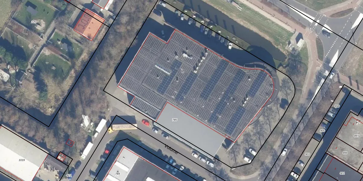 Het perceel waarop Volume 6 staat heeft een oppervlakte van 5385 m². Dit is een zeer groot perceel. De perceeloppervlakte wordt geregistreerd door het Kadaster. Gedetailleerde informatie over de maten van dit perceel kunt u vinden in het rapport Kadastrale kaart met maatvoering van Volume 6.
