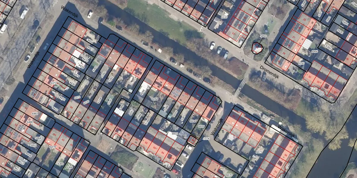 Het perceel waarop Wakerdijk 101 staat heeft een oppervlakte van 135 m². Dit is een middelgroot perceel. De perceeloppervlakte wordt geregistreerd door het Kadaster. Gedetailleerde informatie over de maten van dit perceel kunt u vinden in het rapport Kadastrale kaart met maatvoering van Wakerdijk 101.