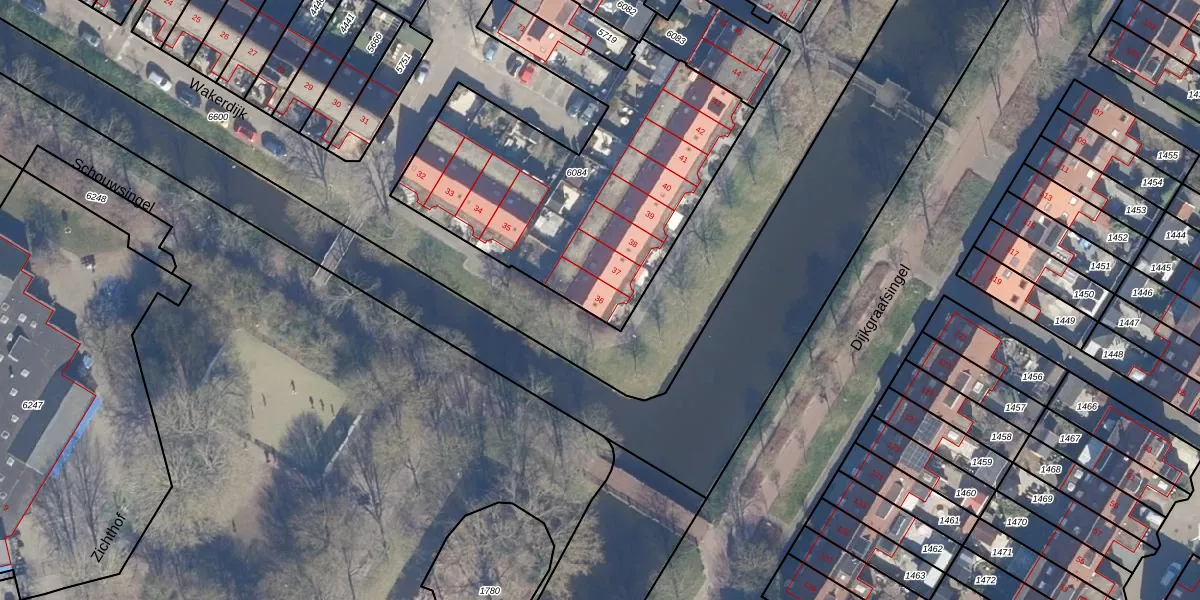Het perceel waarop Wakerdijk 36 staat heeft een oppervlakte van 1620 m². Dit is een zeer groot perceel. De perceeloppervlakte wordt geregistreerd door het Kadaster. Gedetailleerde informatie over de maten van dit perceel kunt u vinden in het rapport Kadastrale kaart met maatvoering van Wakerdijk 36.