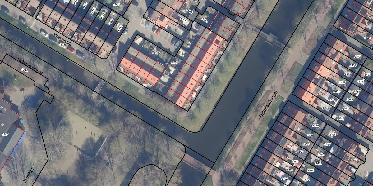 Het perceel waarop Wakerdijk 37 staat heeft een oppervlakte van 1620 m². Dit is een zeer groot perceel. De perceeloppervlakte wordt geregistreerd door het Kadaster. Gedetailleerde informatie over de maten van dit perceel kunt u vinden in het rapport Kadastrale kaart met maatvoering van Wakerdijk 37.