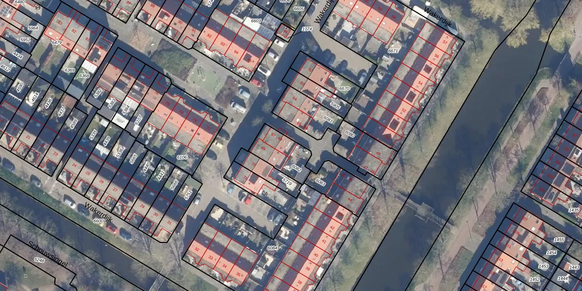 Het perceel waarop Wakerdijk 67 staat heeft een oppervlakte van 230 m². Dit is een middelgroot perceel. De perceeloppervlakte wordt geregistreerd door het Kadaster. Gedetailleerde informatie over de maten van dit perceel kunt u vinden in het rapport Kadastrale kaart met maatvoering van Wakerdijk 67.