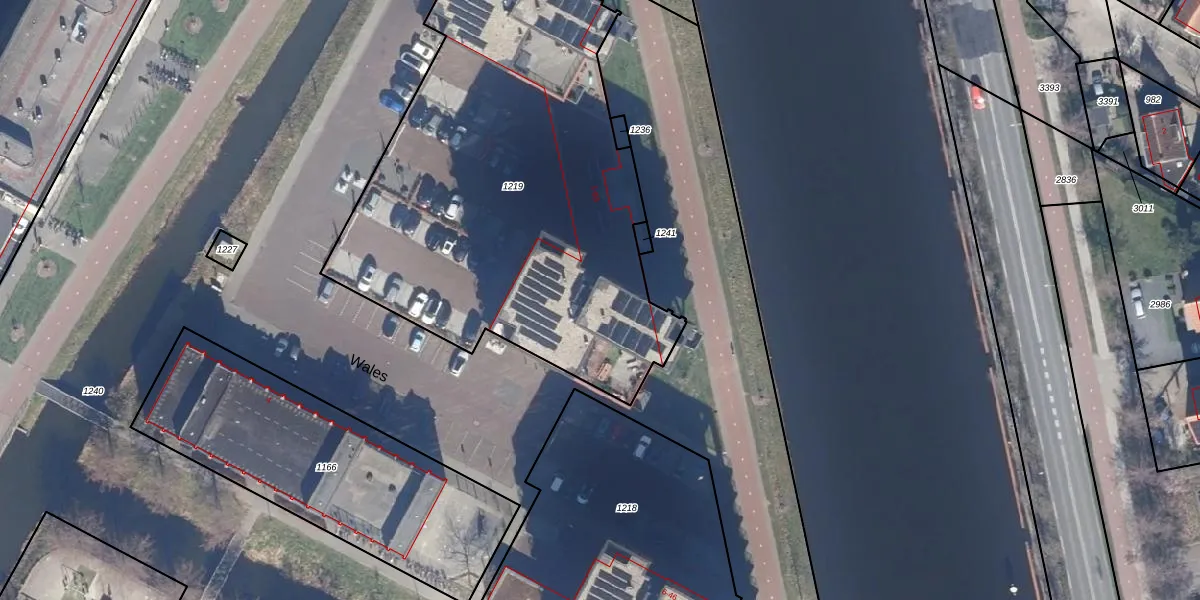 Het perceel waarop Wales 55 staat heeft een oppervlakte van 2585 m². Dit is een zeer groot perceel. De perceeloppervlakte wordt geregistreerd door het Kadaster. Gedetailleerde informatie over de maten van dit perceel kunt u vinden in het rapport Kadastrale kaart met maatvoering van Wales 55.