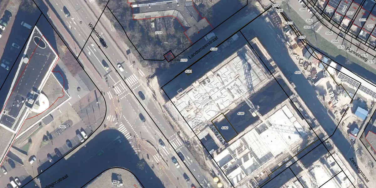 Het adres is gelegen op perceel 4180 in de sectie E en de kadastrale gemeente Purmerend. De kadastrale aanduiding is aldus PMR00-E-4180. Het perceel is met 3607 m² relatief groot. Het gemiddelde ligt in de kadastrale gemeente Purmerend op 876,42 m². De grootste perceeloppervlakte in de kadastrale gemeente is 64,8 ha. De kleinste oppervlakte bedraagt 0 m². Op het perceel zijn 192 adressen aanwezig. De huidige grenzen van het perceel zijn digitaal in de Basisregistratie Kadaster (BRK) geregistreerd op 21-11-2023.