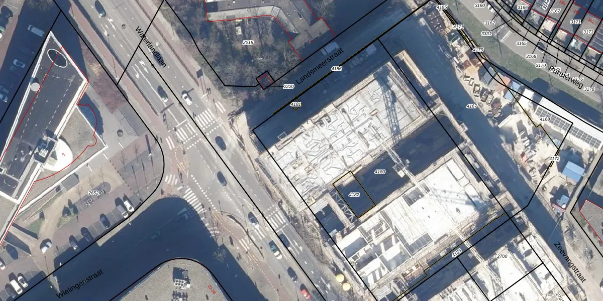 Het perceel waarop Waterlandlaan 1-R staat heeft een oppervlakte van 3607 m². Dit is een zeer groot perceel. De perceeloppervlakte wordt geregistreerd door het Kadaster. Gedetailleerde informatie over de maten van dit perceel kunt u vinden in het rapport Kadastrale kaart met maatvoering van Waterlandlaan 1-R.