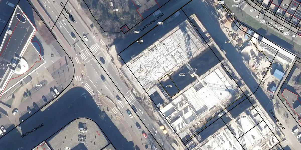 Het adres is gelegen op perceel 4180 in de sectie E en de kadastrale gemeente Purmerend. De kadastrale aanduiding is aldus PMR00-E-4180. Het perceel is met 3607 m² relatief groot. Het gemiddelde ligt in de kadastrale gemeente Purmerend op 876,42 m². De grootste perceeloppervlakte in de kadastrale gemeente is 64,8 ha. De kleinste oppervlakte bedraagt 0 m². Op het perceel liggen in totaal 192 adressen. De huidige grenzen van het perceel zijn digitaal in de Basisregistratie Kadaster (BRK) geregistreerd op 21-11-2023.