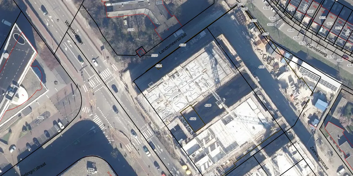Het adres is gelegen op perceel 4180 in de sectie E en de kadastrale gemeente Purmerend. De kadastrale aanduiding is aldus PMR00-E-4180. De oppervlakte van het perceel is 3607 m². Dat is groter dan gemiddeld in Purmerend, waar de gemiddelde perceeloppervlakte op 876,42 m² ligt. Het grootste perceel in de kadastrale gemeente is 64,8 ha. Het kleinste perceel heeft een oppervlakte van 0 m². Er zijn 192 adressen aanwezig op het perceel. In de Basisregistratie Kadaster (BRK) werden de grenzen van het perceel geregistreerd op 21-11-2023.