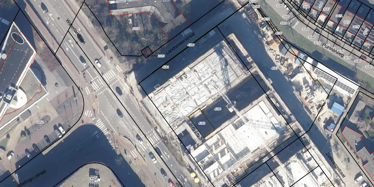 Het adres is gelegen op perceel 4180 in de sectie E en de kadastrale gemeente Purmerend. De kadastrale aanduiding is aldus PMR00-E-4180. De oppervlakte van het perceel is 3607 m². Dat is groter dan gemiddeld in Purmerend, waar de gemiddelde perceeloppervlakte op 876,42 m² ligt. Het grootste perceel in de kadastrale gemeente is 64,8 ha. Het kleinste perceel heeft een oppervlakte van 0 m². Er zijn 192 adressen aanwezig op het perceel. De huidige grenzen van het perceel zijn digitaal in de Basisregistratie Kadaster (BRK) geregistreerd op 21-11-2023.