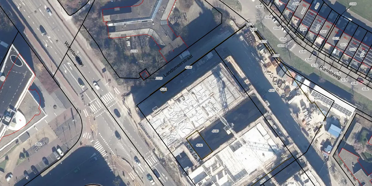Het adres is gelegen op perceel 4180 in de sectie E en de kadastrale gemeente Purmerend. De kadastrale aanduiding is aldus PMR00-E-4180. De oppervlakte van het perceel is 3607 m². Dat is groter dan gemiddeld in Purmerend, waar de gemiddelde perceeloppervlakte op 876,42 m² ligt. Het grootste perceel in de kadastrale gemeente is 64,8 ha. Het kleinste perceel heeft een oppervlakte van 0 m². Op het perceel liggen in totaal 192 adressen. De laatste wijziging in het de Basisregistratie Kadaster (BRK) was op 21-11-2023.