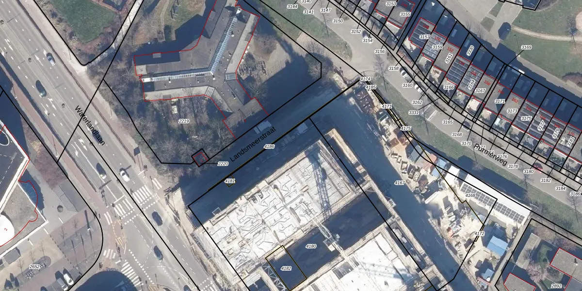Het perceel waarop Waterlandlaan 7-W staat heeft een oppervlakte van 3607 m². Dit is een zeer groot perceel. De perceeloppervlakte wordt geregistreerd door het Kadaster. Gedetailleerde informatie over de maten van dit perceel kunt u vinden in het rapport Kadastrale kaart met maatvoering van Waterlandlaan 7-W.