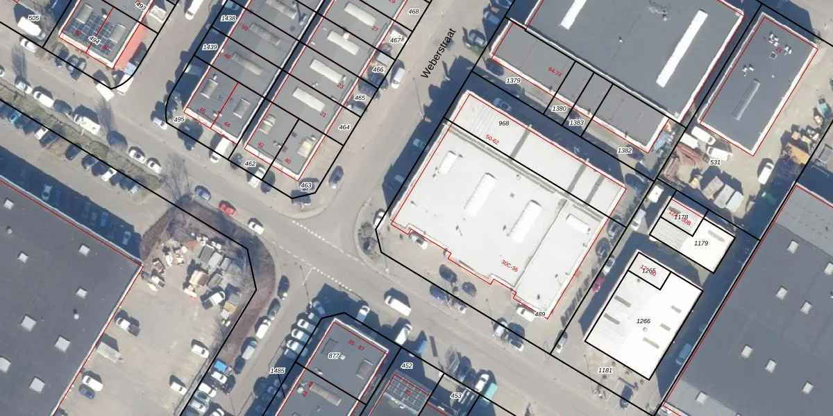Het perceel waarop Weberstraat 50 staat heeft een oppervlakte van 1817 m². Dit is een zeer groot perceel. De perceeloppervlakte wordt geregistreerd door het Kadaster. Gedetailleerde informatie over de maten van dit perceel kunt u vinden in het rapport Kadastrale kaart met maatvoering van Weberstraat 50.