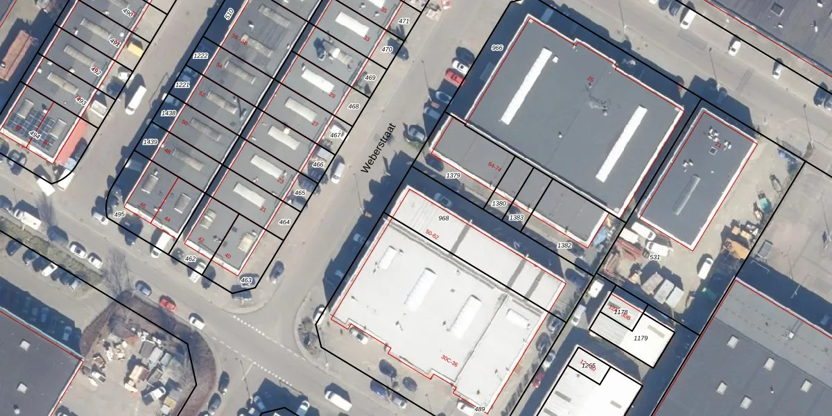 Het perceel waarop Weberstraat 56 staat heeft een oppervlakte van 666 m². Dit is een groot perceel. De perceeloppervlakte wordt geregistreerd door het Kadaster. Gedetailleerde informatie over de maten van dit perceel kunt u vinden in het rapport Kadastrale kaart met maatvoering van Weberstraat 56.
