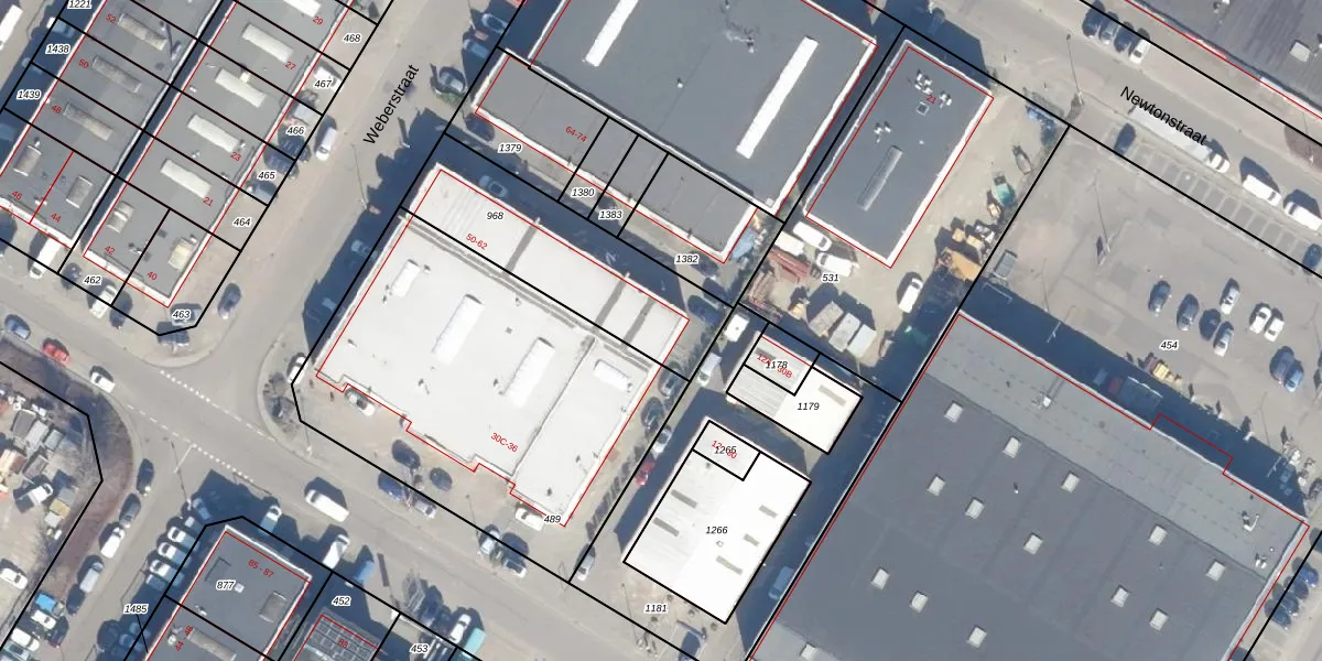 Het perceel waarop Weberstraat 62 staat heeft een oppervlakte van 666 m². Dit is een groot perceel. De perceeloppervlakte wordt geregistreerd door het Kadaster. Gedetailleerde informatie over de maten van dit perceel kunt u vinden in het rapport Kadastrale kaart met maatvoering van Weberstraat 62.