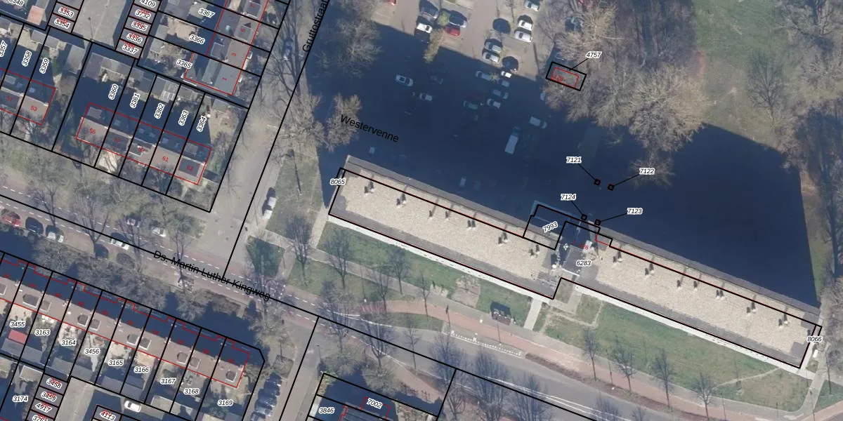 Het perceel waarop Westervenne 105 staat heeft een oppervlakte van 1355 m². Dit is een zeer groot perceel. De perceeloppervlakte wordt geregistreerd door het Kadaster. Gedetailleerde informatie over de maten van dit perceel kunt u vinden in het rapport Kadastrale kaart met maatvoering van Westervenne 105.