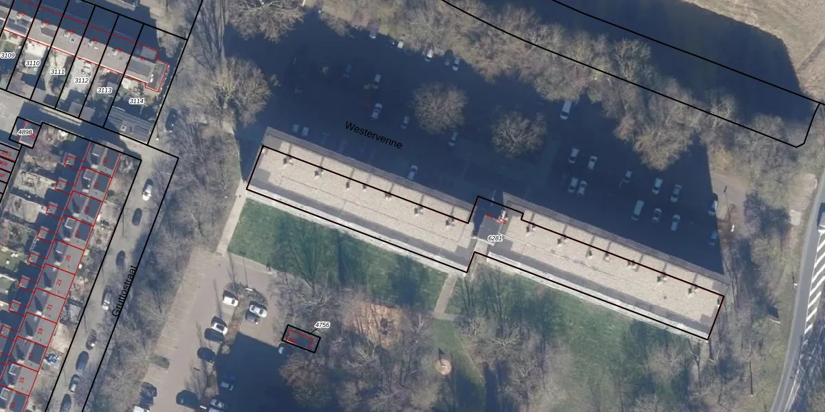 Het perceel waarop Westervenne 385 staat heeft een oppervlakte van 1355 m². Dit is een zeer groot perceel. De perceeloppervlakte wordt geregistreerd door het Kadaster. Gedetailleerde informatie over de maten van dit perceel kunt u vinden in het rapport Kadastrale kaart met maatvoering van Westervenne 385.
